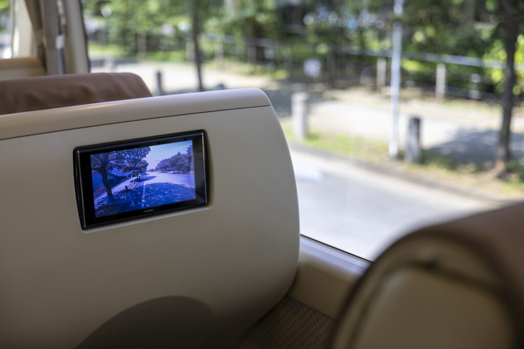1座席ごとに個別モニターを設置。地上デジタル放送や、車載前方カメラによる車外風景を座席にてお楽しみいただけます。