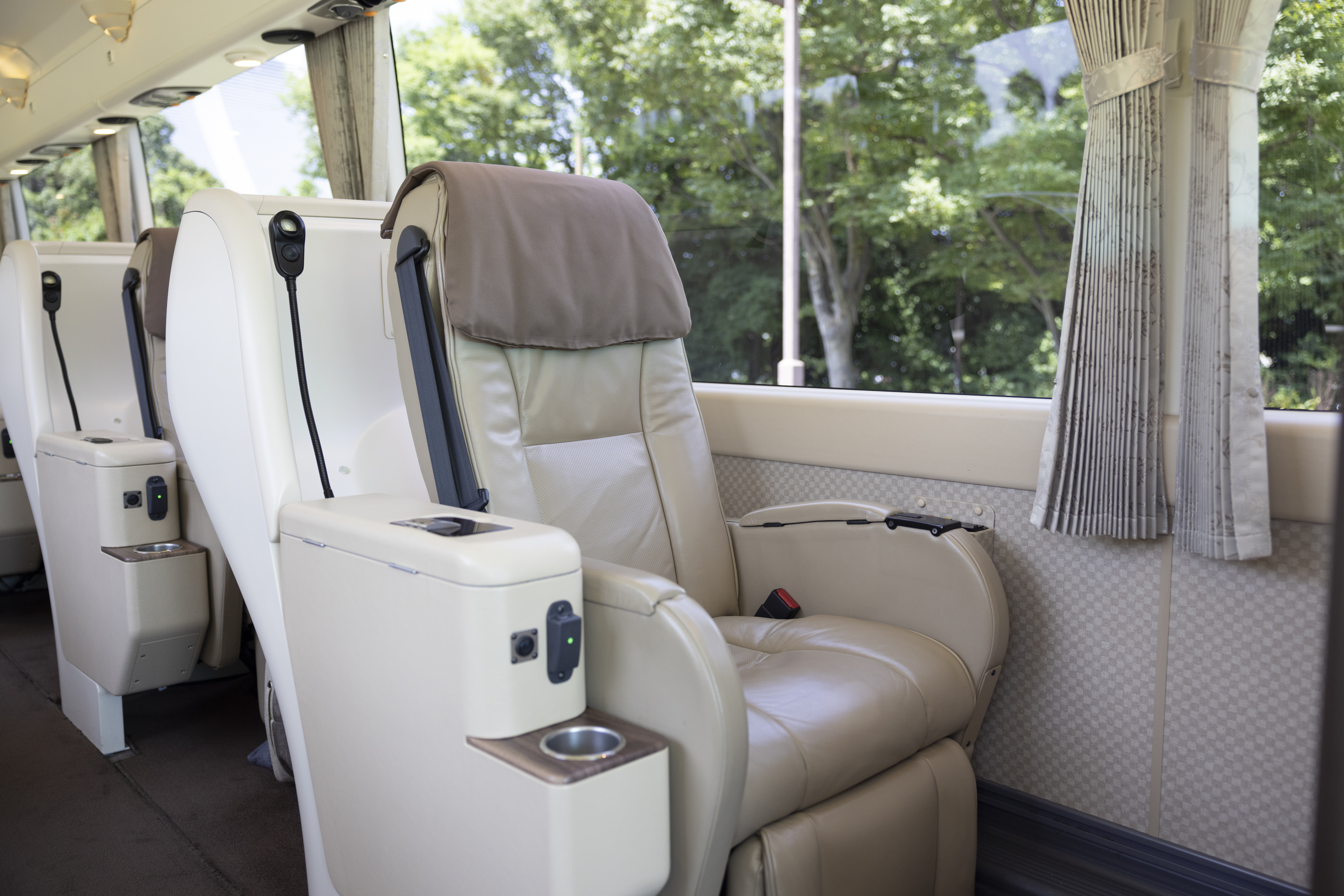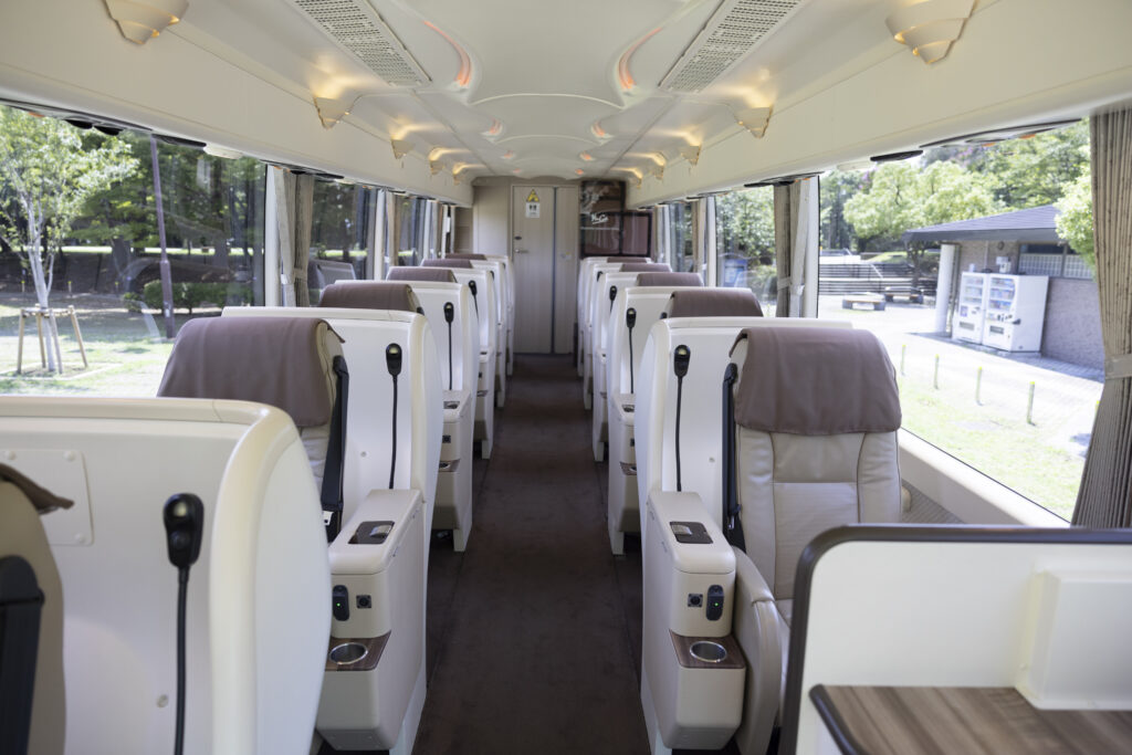 通常の大型バスは40席以上の座席を有していますが、「YuGa」の座席数はわずか10席。